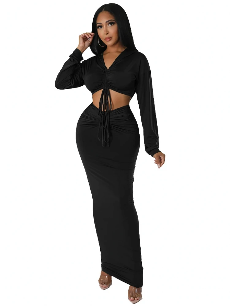 Комплект из двух предметов 2023 весна-лето женское вечернее платье без бретелек короткий топ с высоким разрезом Макси-юбка летние праздничные пляжные наряды костюм