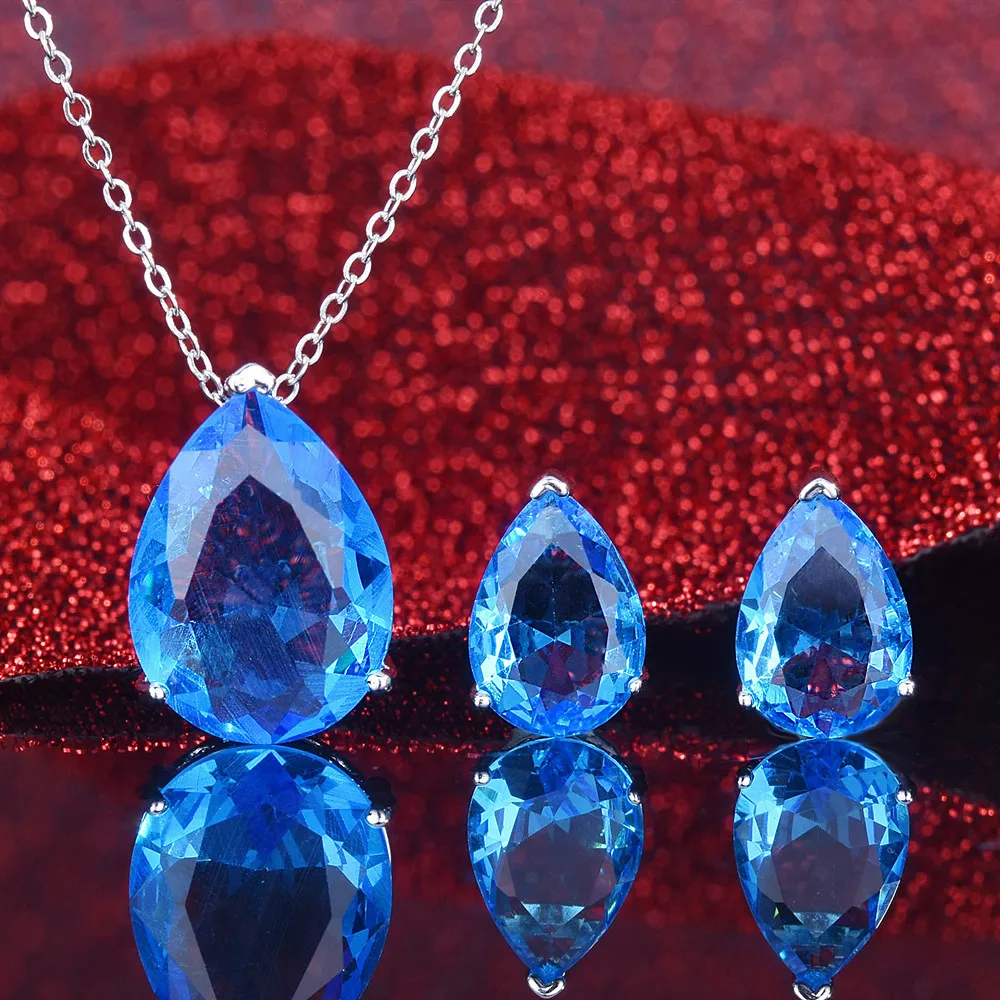 Комплект из колье и серёг, с подвеской в виде капли воды