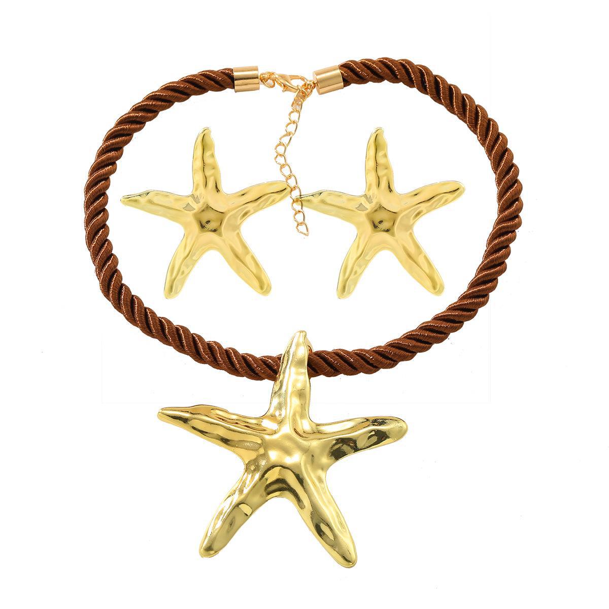 «Комплект из ожерелья и серег «Морская звезда» — летний пляжный стиль, подвеска из сплава в морском стиле» темно-коричневого