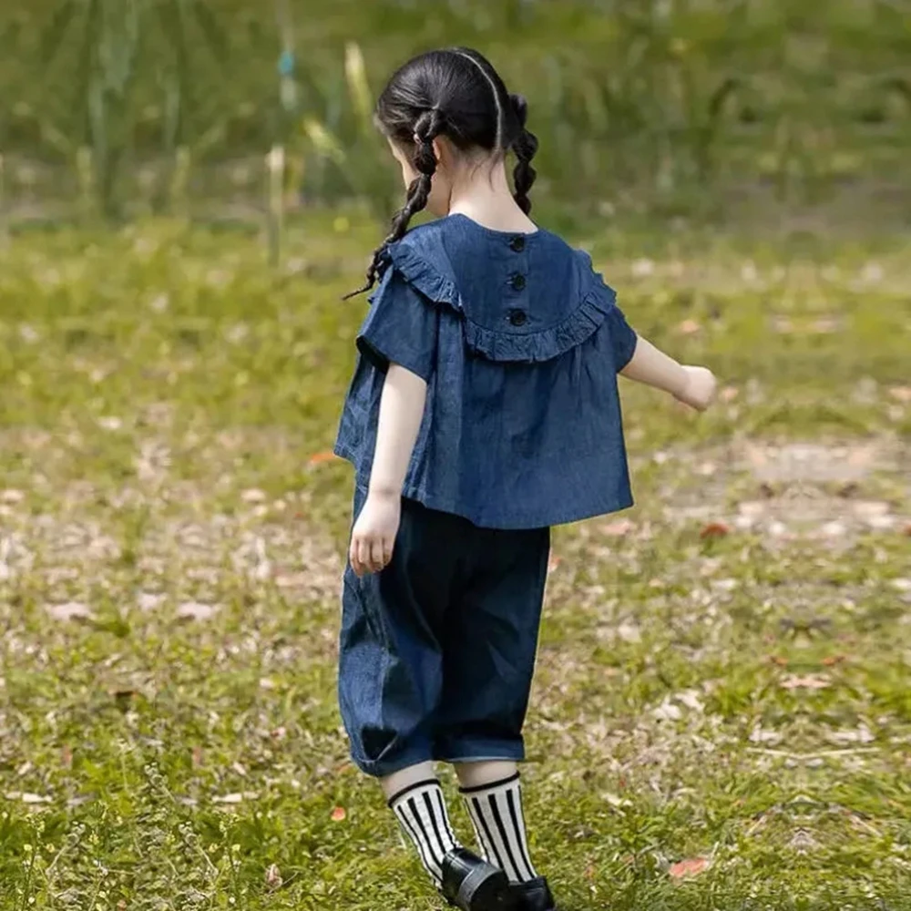 Комплект из топа с коротким рукавом и свободных брюк для девочек