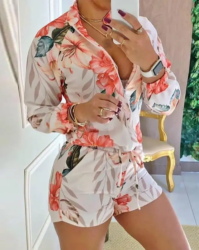 Комплект из топа и шорт с цветочным принтом, на молнии