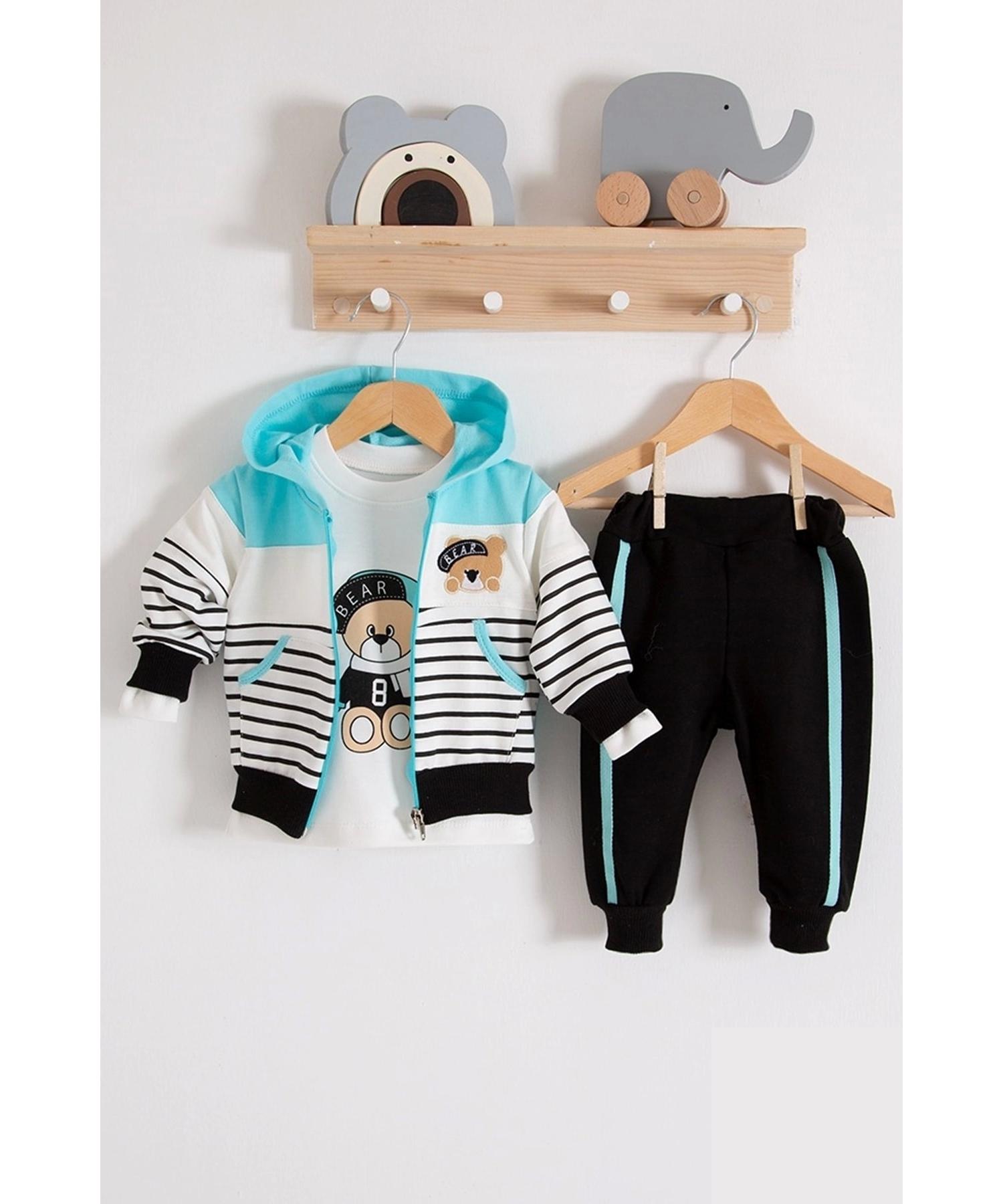 Комплект из трех предметов для мальчика с полосатым медвежонком