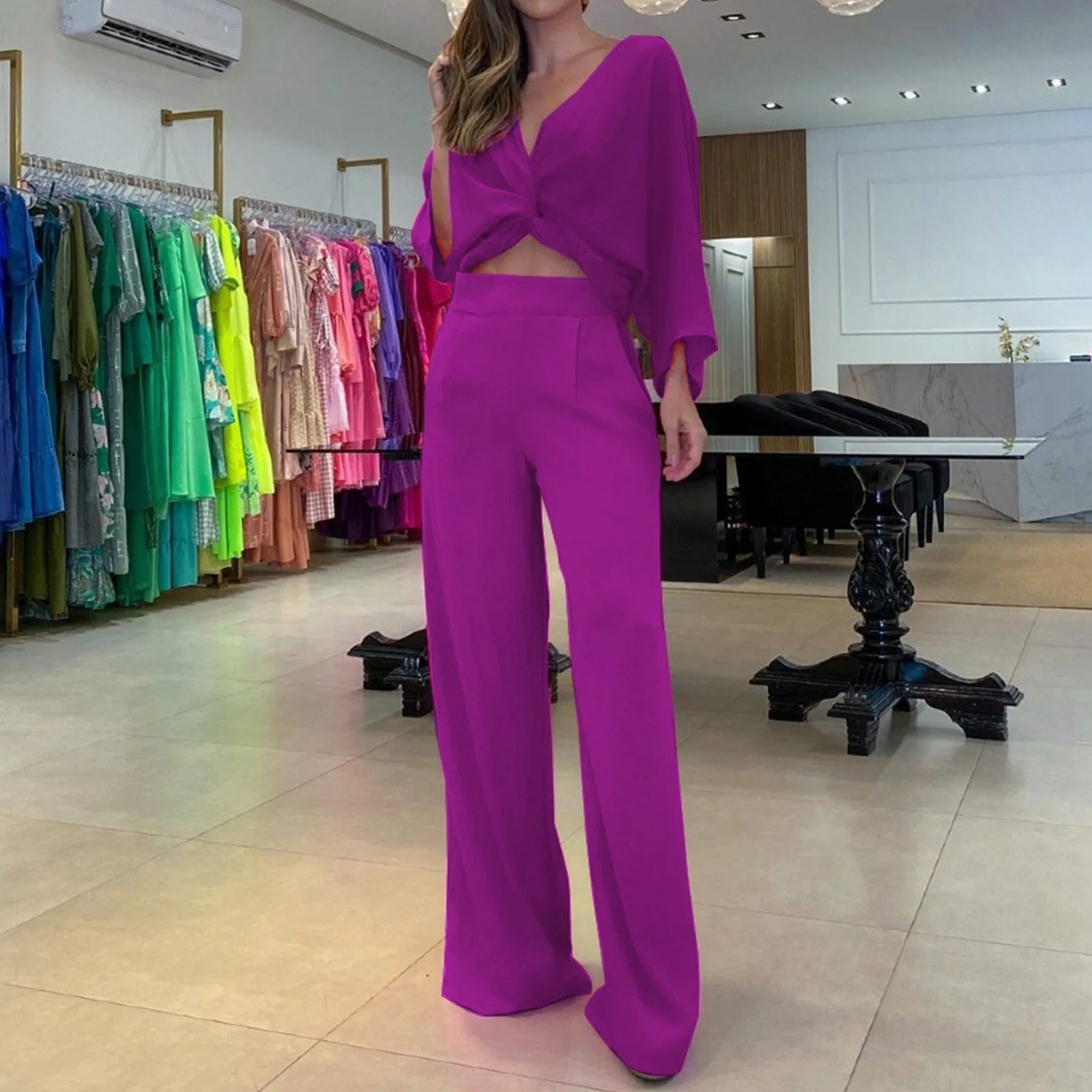 Комплект из трех предметов, женская одежда, элегантный костюм, Бралетт, майка и Укороченная рубашка, узлы и широкие брюки, Клубная Женская одежда для отпуска