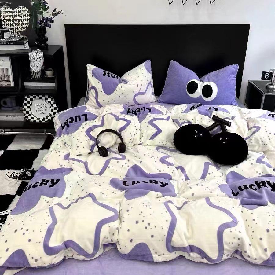 Комплект из трех простыней из стираного хлопка с рисунком «Бабочка» из четырех предметов, простыня для студенческого общежития 1.2m 3pcs фиолетовый