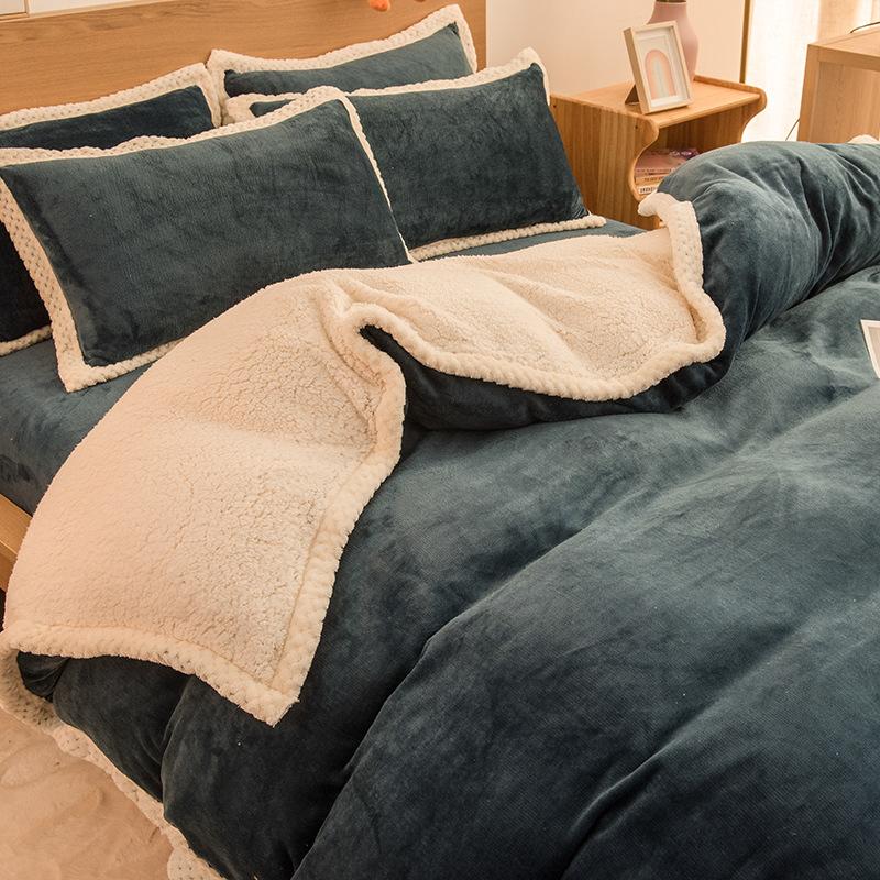 Комплект из четырех предметов из кашемира ягненка, кашемировая простыня из молочной шерсти, пододеяльник из коралловой шерсти, зимнее фланелевое постельное белье 1.8M(4pcs)