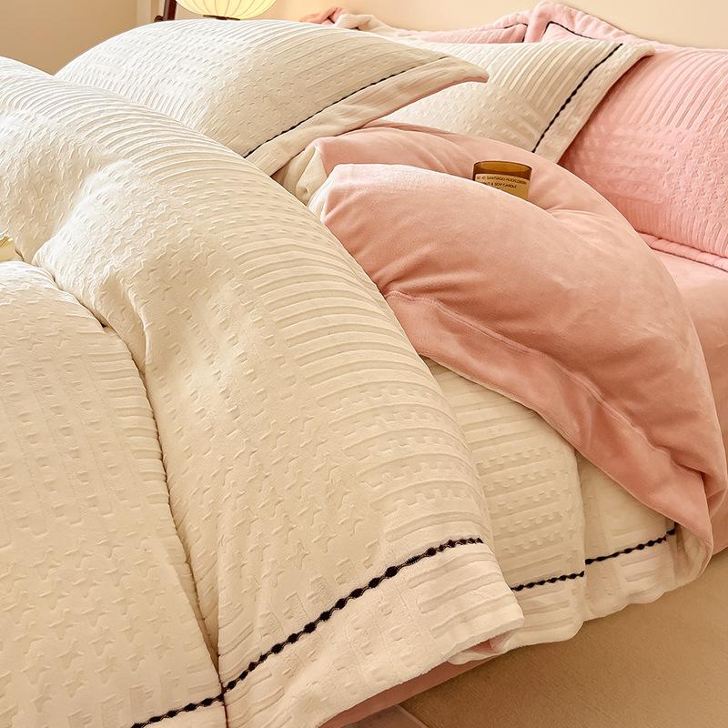 Комплект из четырех предметов из тяжелого молочного бархата в стиле Ins со специальной вышивкой из кораллового бархата 1.8m bed sheet 4pcs
