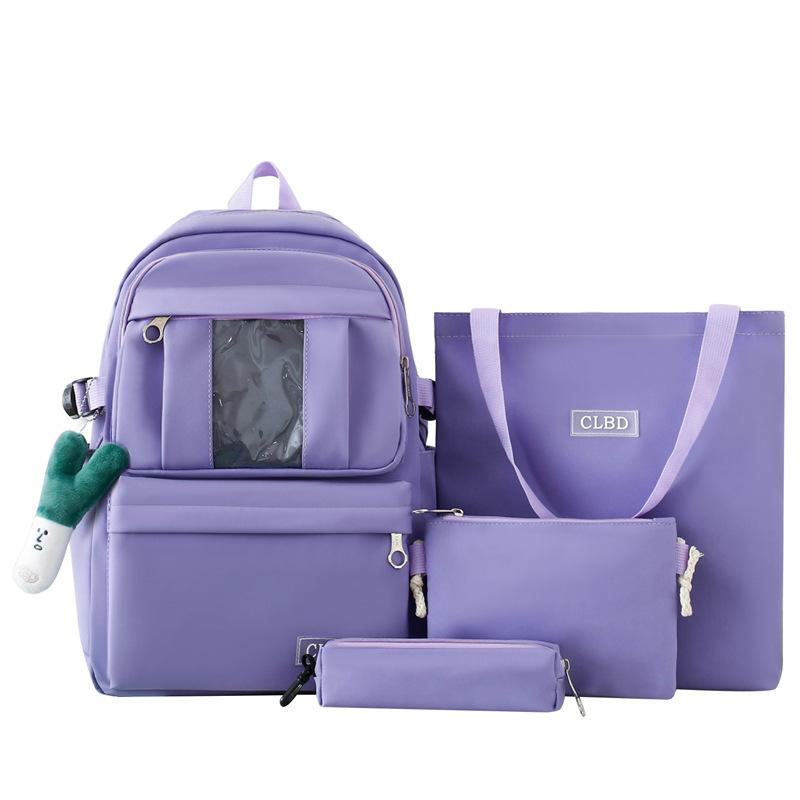 Комплект из четырех рюкзаков для девочек, большой вместимости, однотонный рюкзак для учеников младших классов средней школы фиолетовый