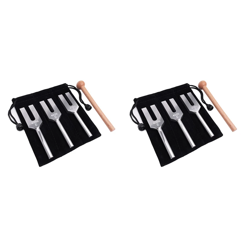 Комплект из 2 вилок для настройки, 4096 Гц, 4160 Гц, 4225 Гц, комплект вилок для настройки с деревянными молотками и тканевым чехлом, стиль 2