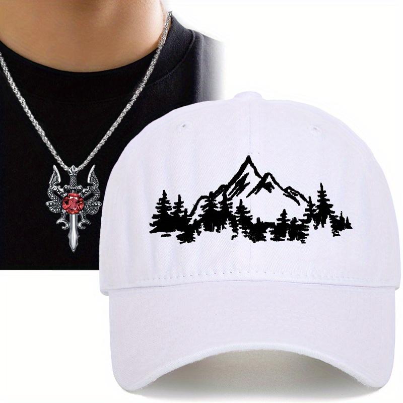 Комплект из 2 мужских бейсболок, ожерелья, вышитых шляп с утиным язычком, сетчатая шляпа от солнца, солнцезащитная шляпа Trucker, ожерелье с подвеской в виде рубинового креста, спортивная кепка для пары белый