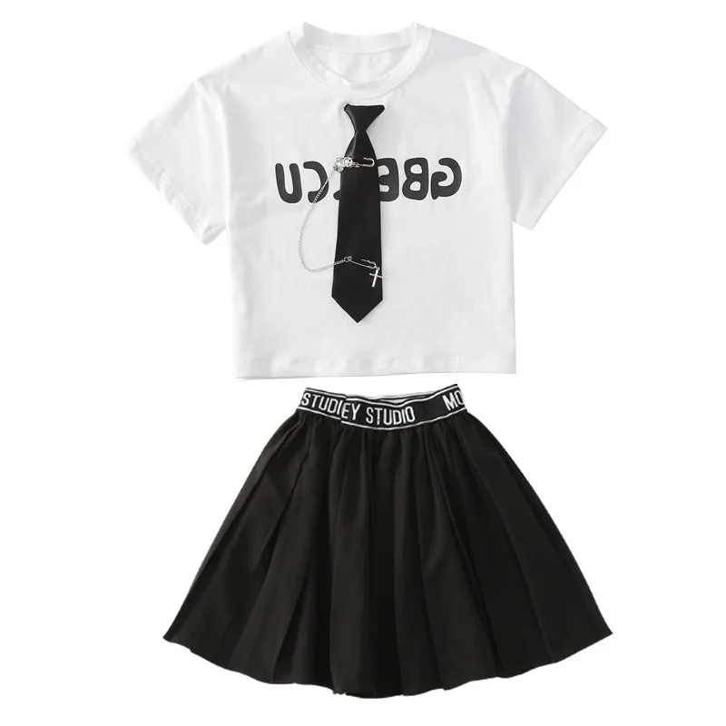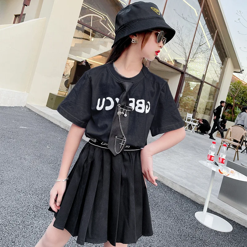 Комплект из 2 предметов, хлопковая Футболка и плиссированная юбка для девочек-подростков
