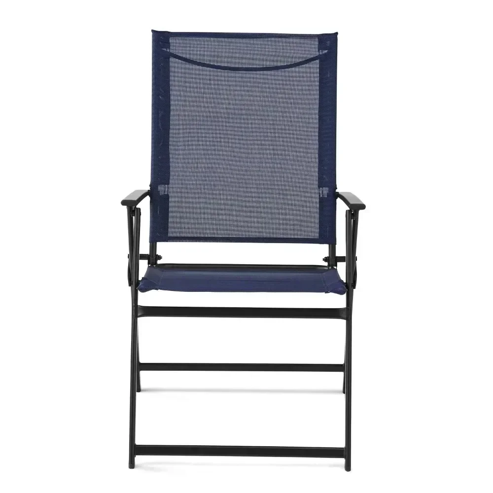 Комплект из 2-х квадратных складных стульев из стальной ткани для внутреннего дворика, темно-синего цвета, мебель для патио, Складной садовый стул