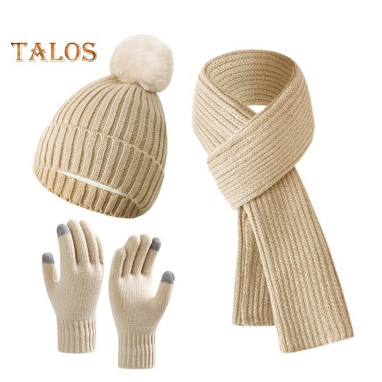 Комплект из 3 предметов: шапка, шарф, перчатки, толстая вязаная теплая шапка, нескользящие перчатки, эластичная защита ушей, ветрозащитная зимняя шапка для велоспорта, катания на лыжах, купольная шапка для шеи