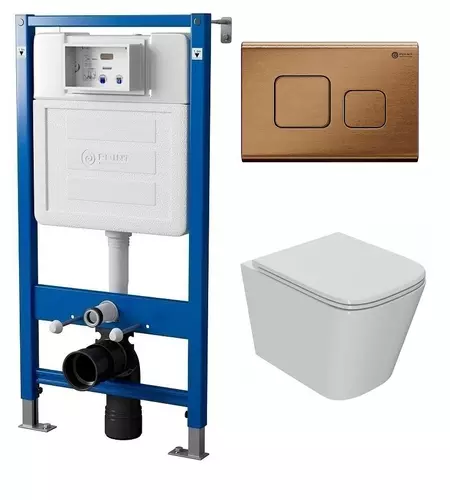 Комплект инсталляции с подвесным унитазом Point Ника белый клавиша бронзовая