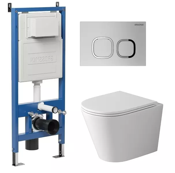 Комплект инсталляция с унитазом, крышкой и кнопкой смыва «Grossman» 97.4478SQ.02.110 безободковый белый