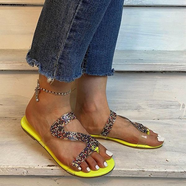 sandals rhinestone slip-on flat slipper woman shoes non-slip breathable women's summer footwear crystal mixed colors slaps women 2021, Black