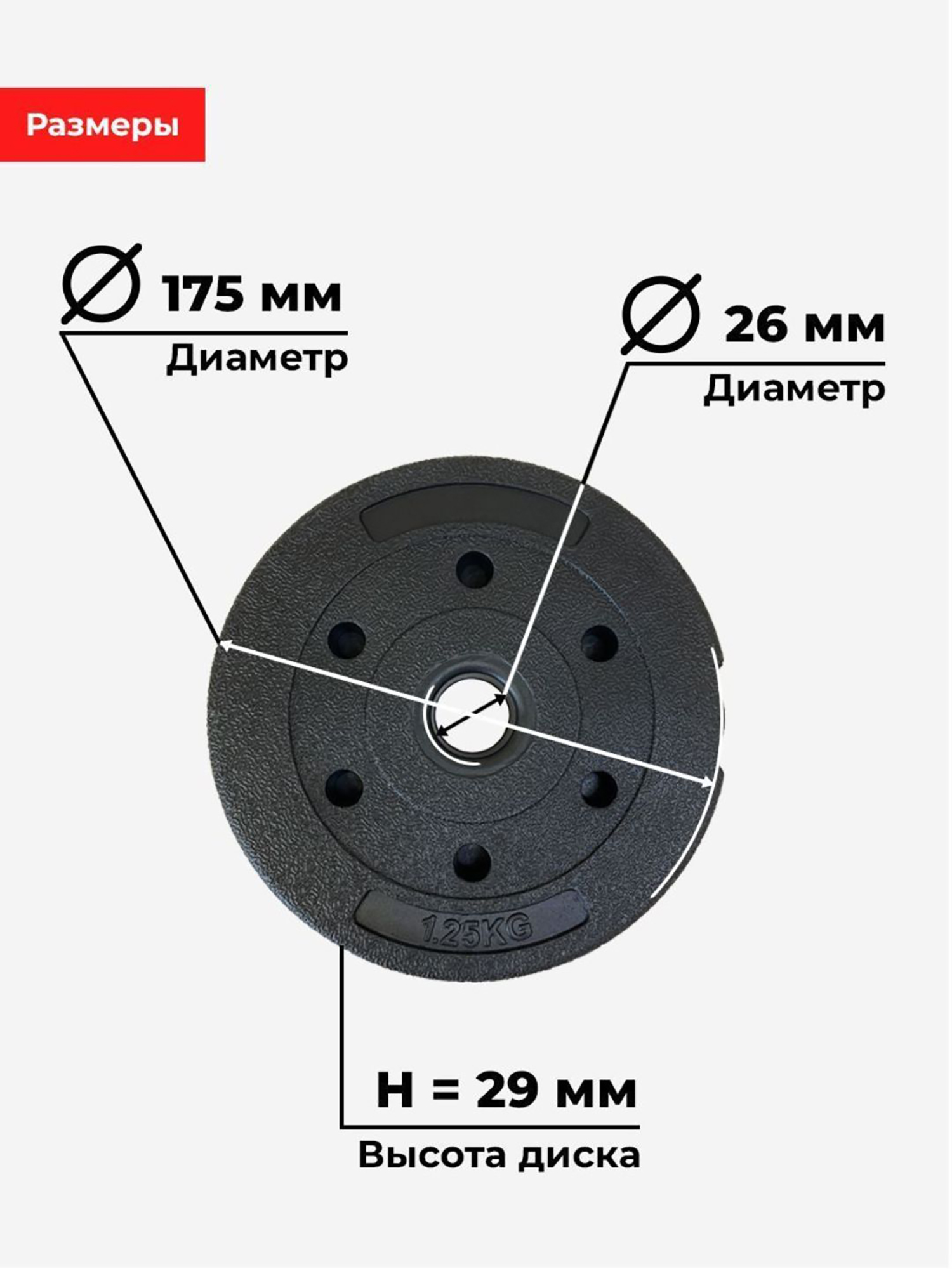 Комплект композитных дисков для гантелей и штанг 5 кг, 4шт х 1,25кг, Черный
