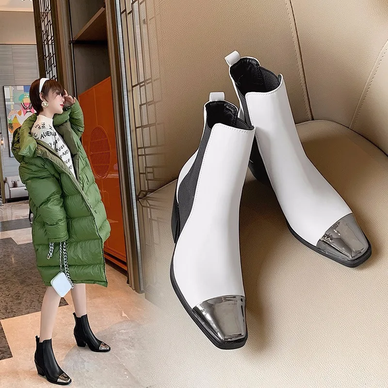Large Size Women's Boots 2019 Spring and Autumn Models Sequins Thick with Square Head Color Matching Fashion Ladies Ankle Boots