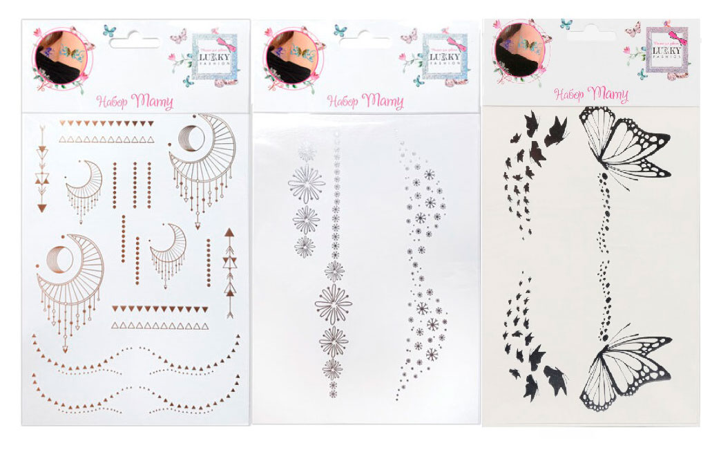 Благодаря переводным татуировкам от бренда LUKKY, выполненным в виде веснушек, звездочек, бабочек и цветочков, ты станешь объектом всеобщего внимания и восхищения! Вырежи понравившееся изображение, сними защитную пленку и положи лицевой стороной на кожу. Намочи ватный диск и приложи его к внешней стороне подложки татуировки. Подержи 30 секунд, чтобы бумажная подложка полностью стала влажной. После аккуратно сними бумажный слой и протри татуировку. Товар представлен в ассортименте без возможности выбора модели!