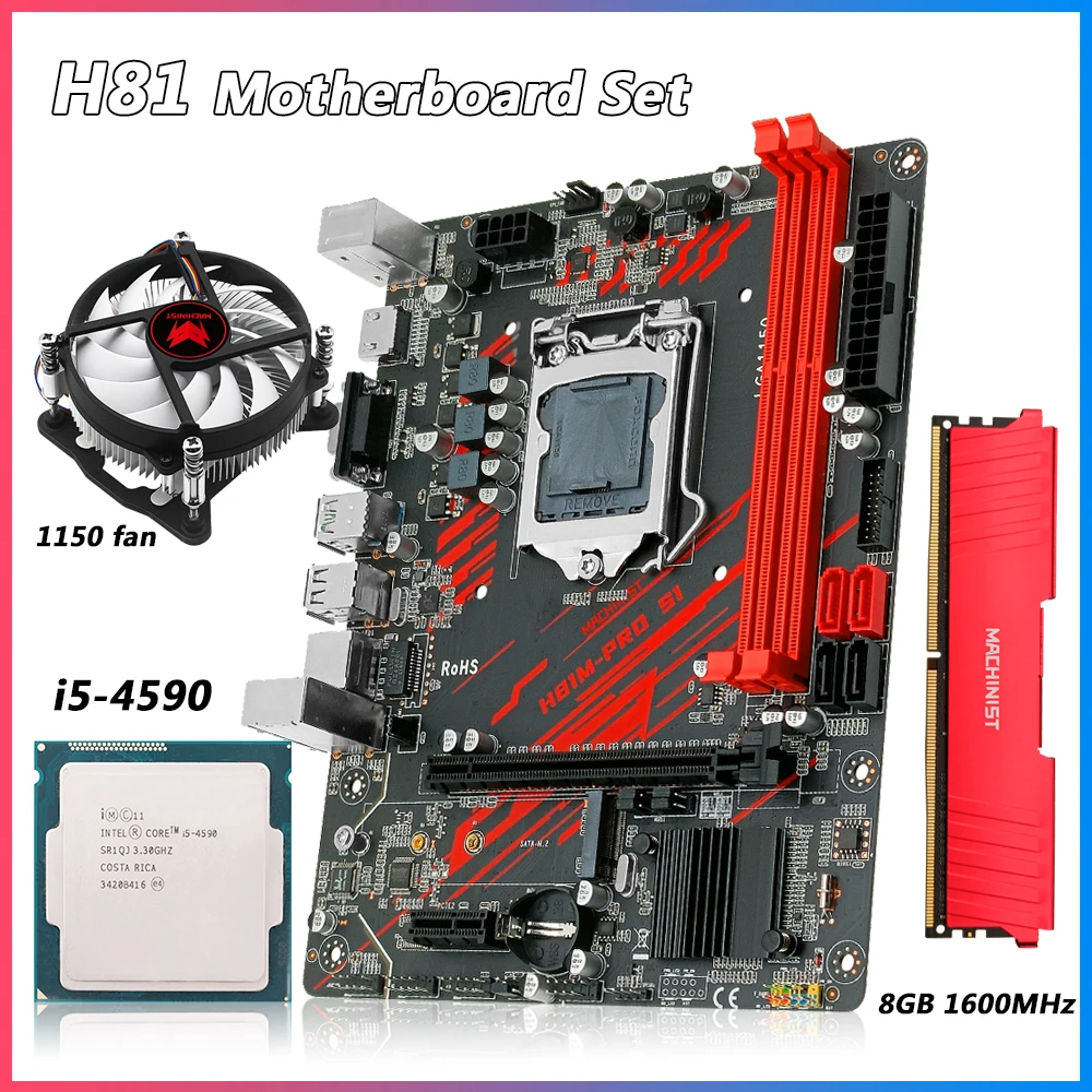 Комплект материнской платы Machinist H81 с процессором Intel Core I5 4590, 8 ГБ, 1600 МГц, память DDR3 и кулер ЦП, LGA 1150 H81-PRO S1
