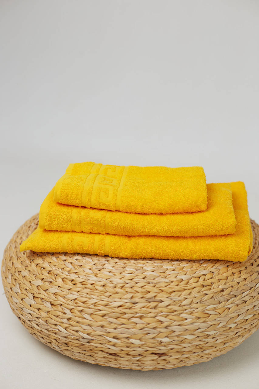 Комплект махровых полотенец 40х70 50х90 70х140 Желтый Узбекистан, Серый