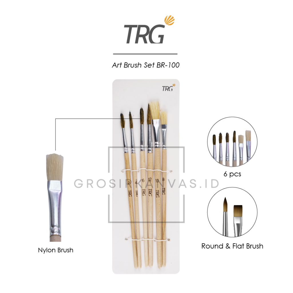 Grosir TRG Kuas Lukis Cat Air Minyak Akrilik Poster BR-100 - Watercolor Acrylic Paint Art Brush Set Isi 6 Buah TRG