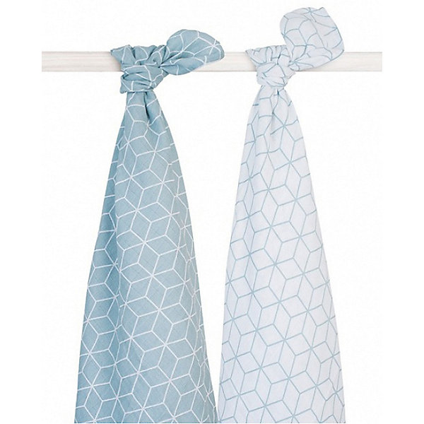 Комплект муслиновых пеленок 115х115см, 2шт, Graphic stone green (Серо-зеленый), Grau/grün
