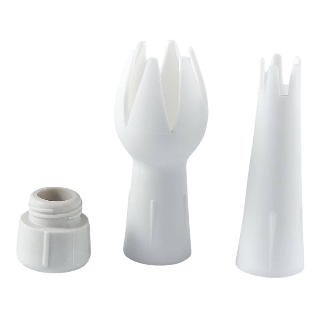 Состоит из насадок "тюльпан", "прямой" и переходника. Используется для нанесения декорированных "шапок" из взбитых сливок на кофейных напитках, десертах и других изысканных блюдах.