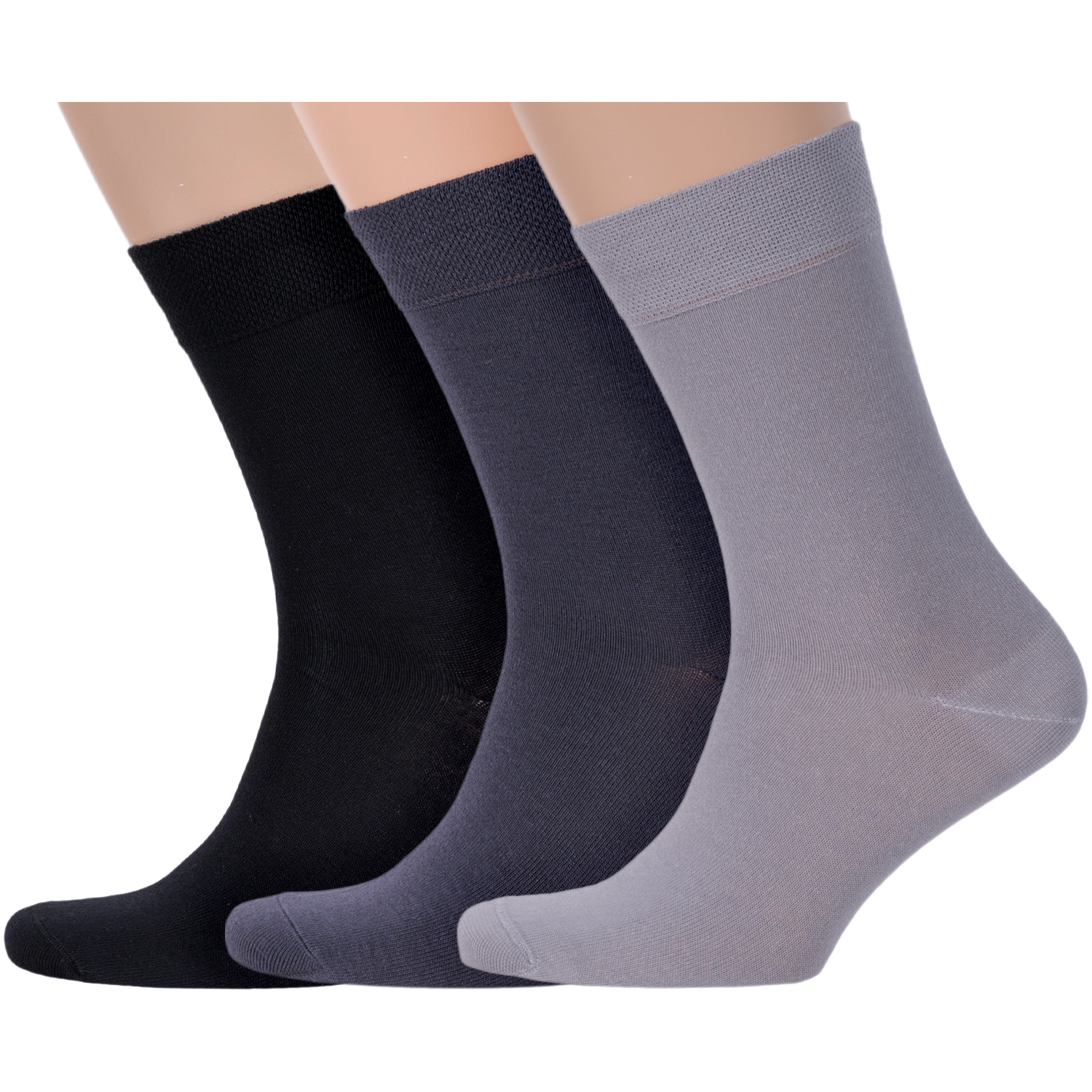 Комплект мужских однотонных носков. Модель средней длины с двойным бортом (манжетом резинки) и неощутимым кеттельным швом на мыске. Изготовлены на фабрике в Беларуси в г. Бресте из хлопка с добавлением полиэстера и эластана для износостойкости изделия и комфортной посадки. Процентное соотношение волокон: 73% хлопок, 25% полиэстер, 2% эластан. В комплект входят 3 пары носков арт. 14С2122: по 1 паре черного, темно-серого и светло-серого цветов. Поставляются с индивидуальными фабричными этикетками в обычном или курьер-пакете.