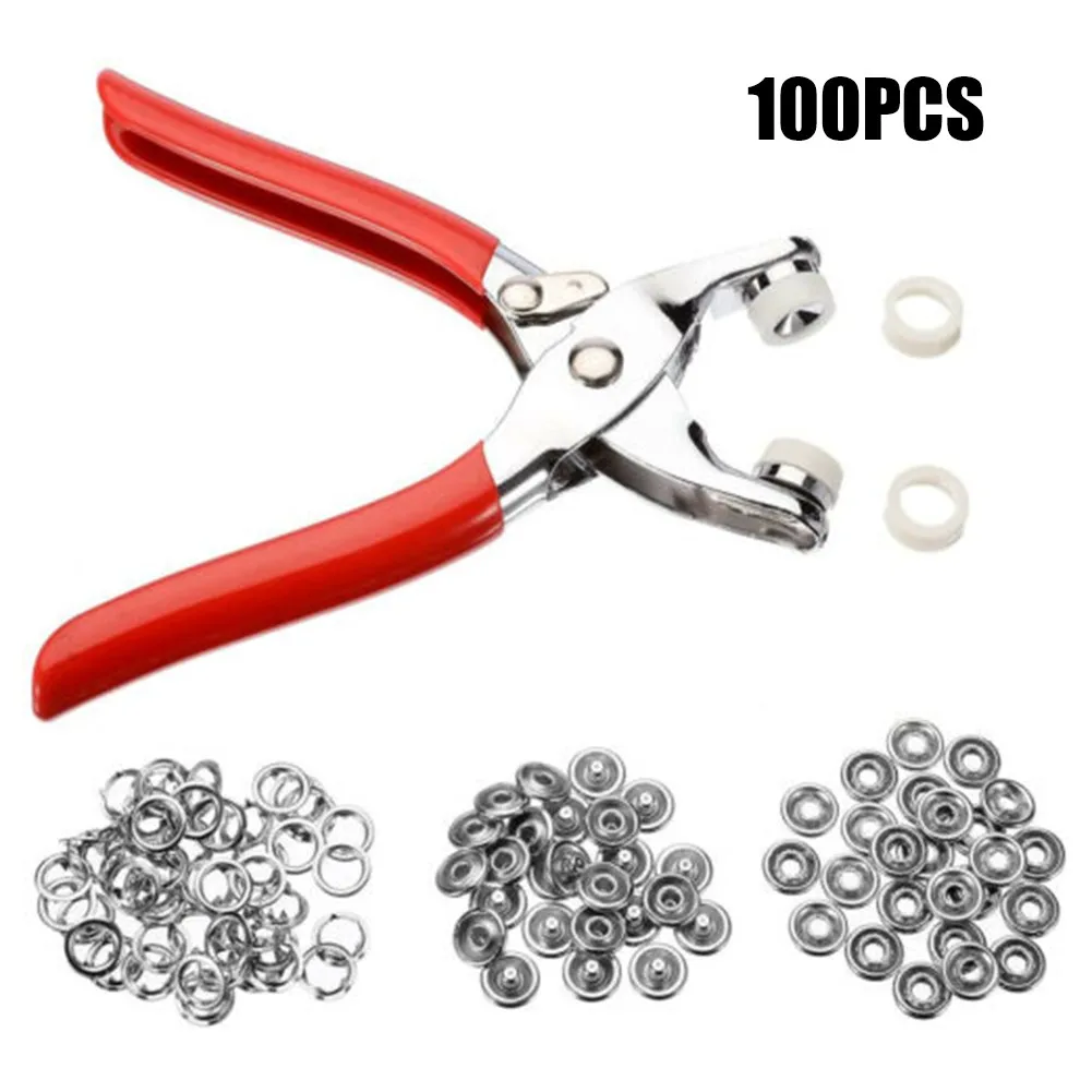 100PCS Snap Pliers Tool Prong Pliers Ring Press Studs Snap Popper Fasteners 9.5mm DIY Hand Tool Kit Baby Clothes Snap Pliers