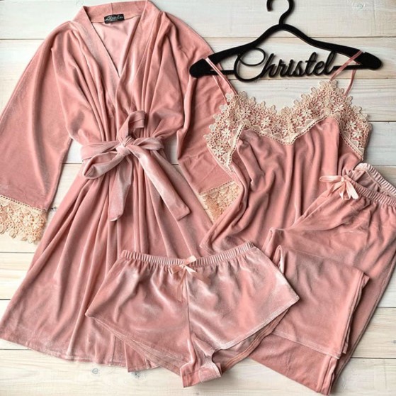 Пижама (майка+шорты+штаны+халат) Christel Kelly 061-05 Пудра, Пижама (майка+шорты+штаны+халат) Christel Kelly 061-05 L Пудра