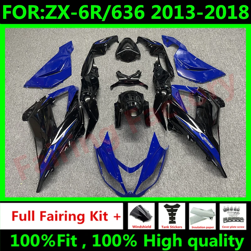 Комплект обтекателей для мотоцикла, подходит для ниндзя модели 2013, 2014, 2016, 2017, 2018, 636, ZX6R, zx, 6r, комплект обтекателей для бака, синий, черный
