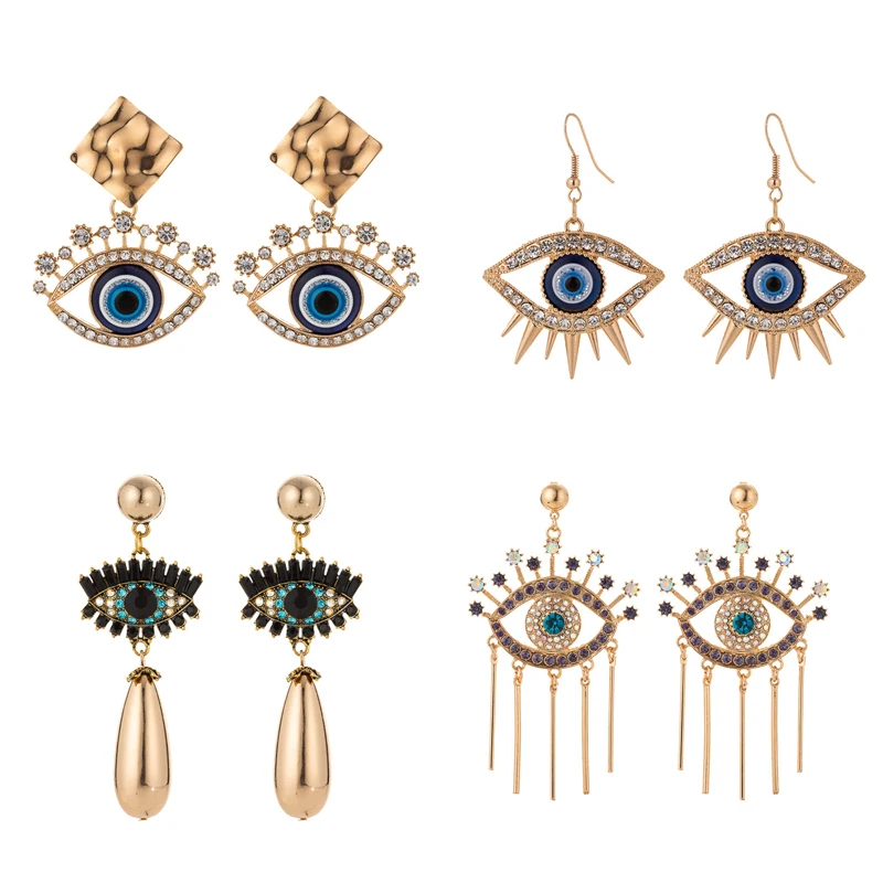 New Luxury Rhinestone Evil Eye Statement Drop Earrings 2020 For Women Punk Vintage Tassel Dangle Hanging Earring Jewelry Gifts