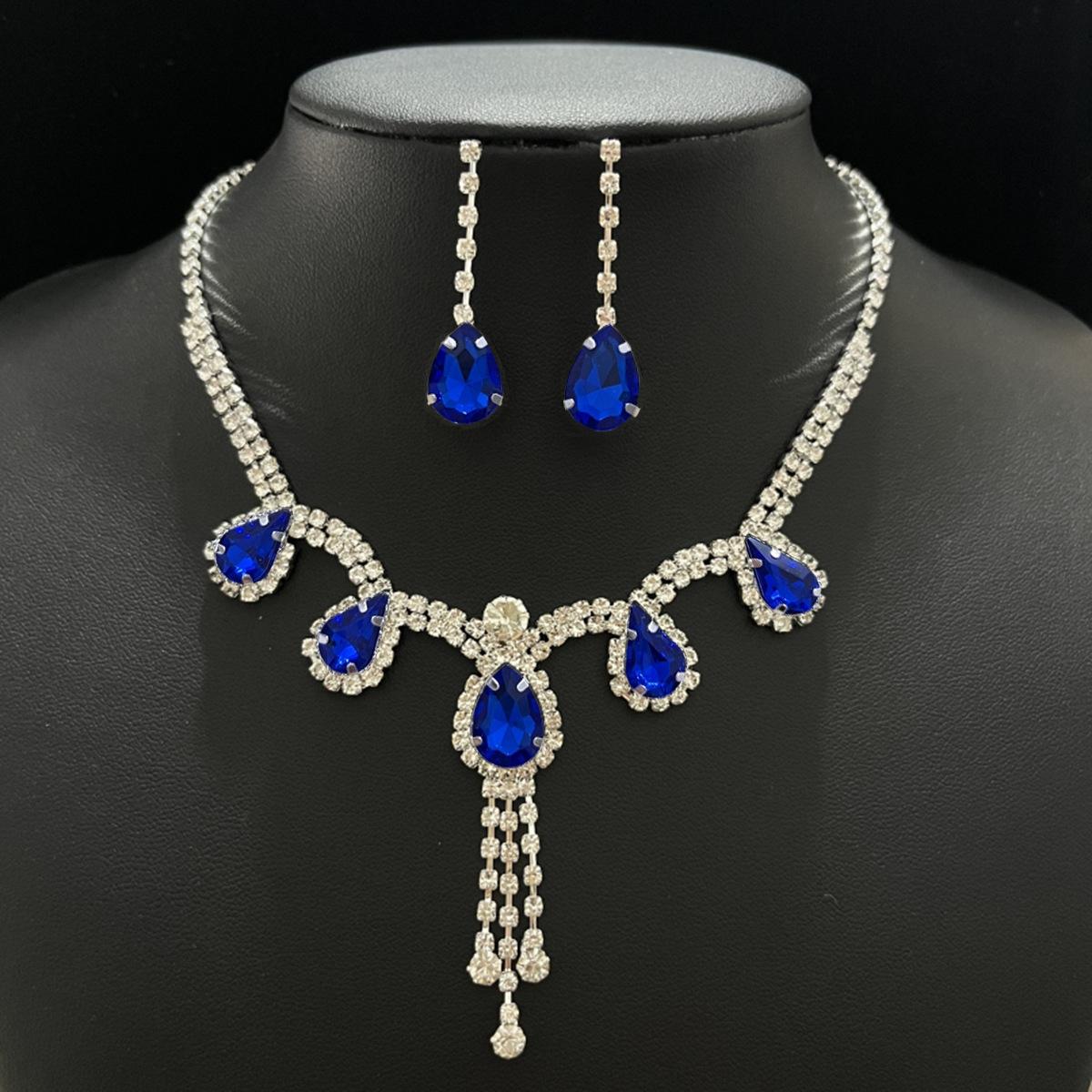 Комплект ожерелья с подвеской в виде капли воды, инкрустированный бриллиантами. Европейская и американская легкая роскошная цепочка на ключицу для тяжелой промышленности. Высококачественное украшение для предмета. синий