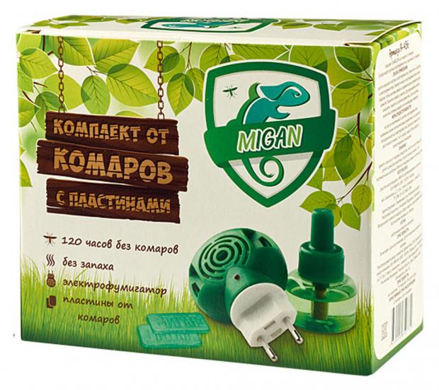 Комплект от комаров Migan фумигатор +10 пластин от комаров длительного действия