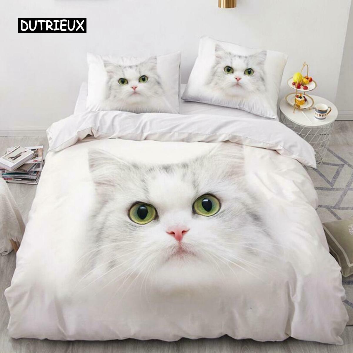 Комплект пододеяльников с изображением кошек, размер Queen, милый питомец, напечатанный на пододеяльнике для детей, мальчиков и девочек, 3D-покрывало из полиэстера с изображением животных из мультфильма EU single(135x200cm)