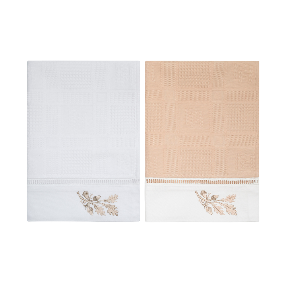 Комплект полотенец вафельных BELLEHOME с вышивкой Oaks, 40х70 см, 2 шт,, Бежевый;белый