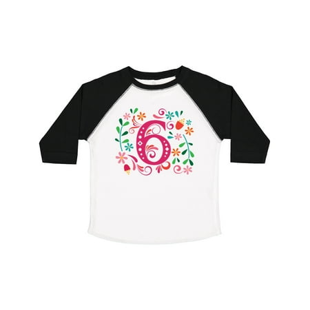 Inktastic 6th Birthday Flowered 6 Year Old Girl Gift Toddler Toddler Girl T-Shirt