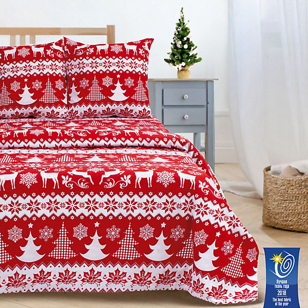 Комплект постельного белья Евро Этель "Зимний узор, Красный, Комплект постельного белья Евро Этель "Зимний узор"