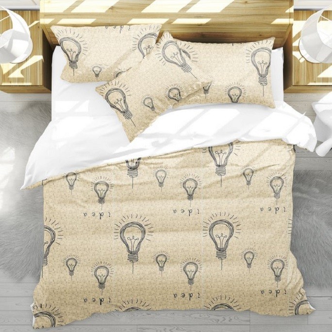 Комплект постельного белья "Идея" лампочки на кремовом CottonTwill 200х240 см Ранфорс Евро (ДР091-4)