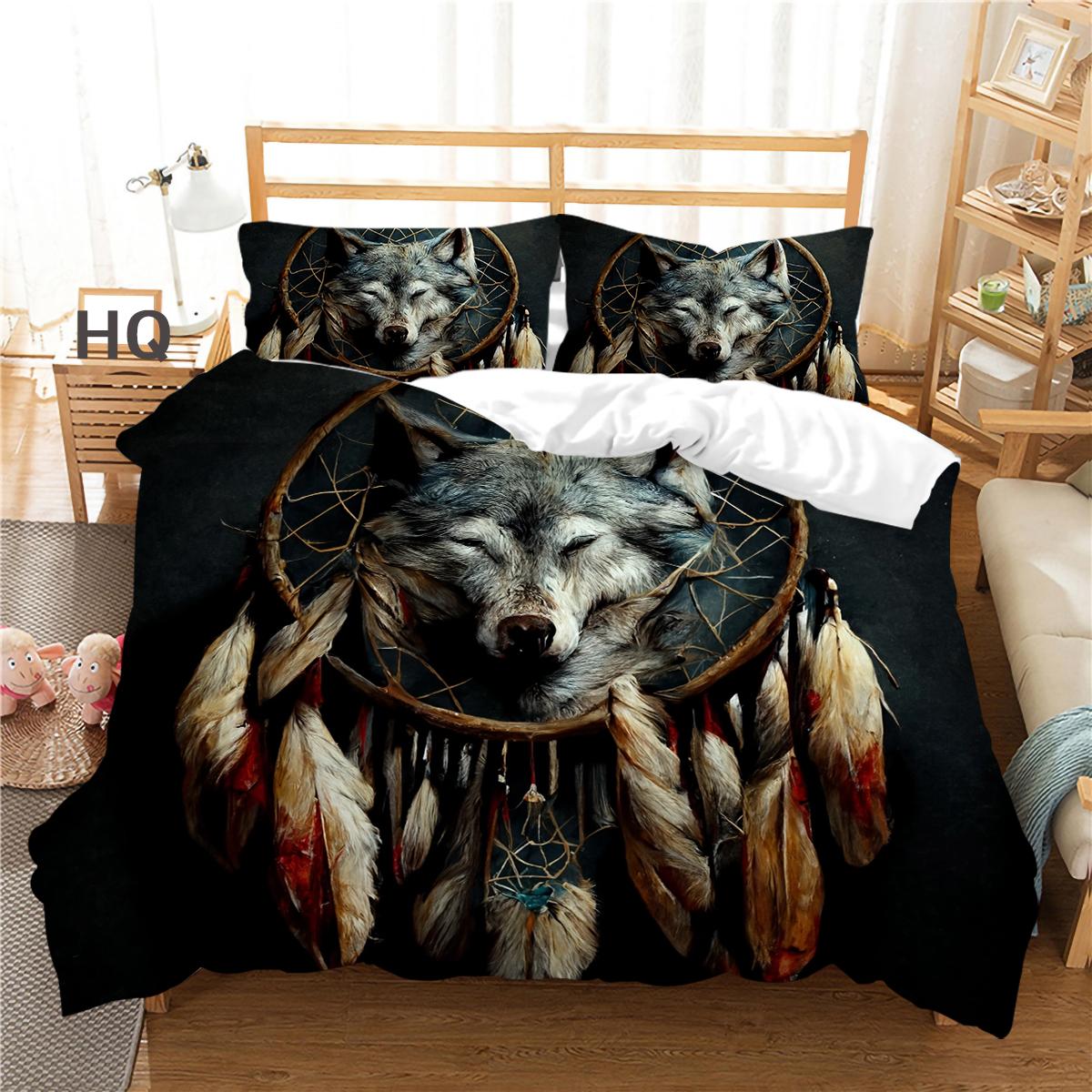 Комплект постельного белья «Ловец снов» с волком, пододеяльник с рисунком волка, наволочка, домашний комплект постельного белья, AU/EU/US, полноразмерная односпальная/двуспальная кровать, украшение для дома Baby 100x135cm