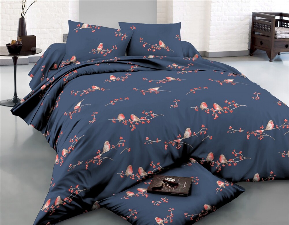 Комплект постельного белья Сатин Делюкс СНЕГИРИ двуспальный 175х215 см, наволочки 70*70