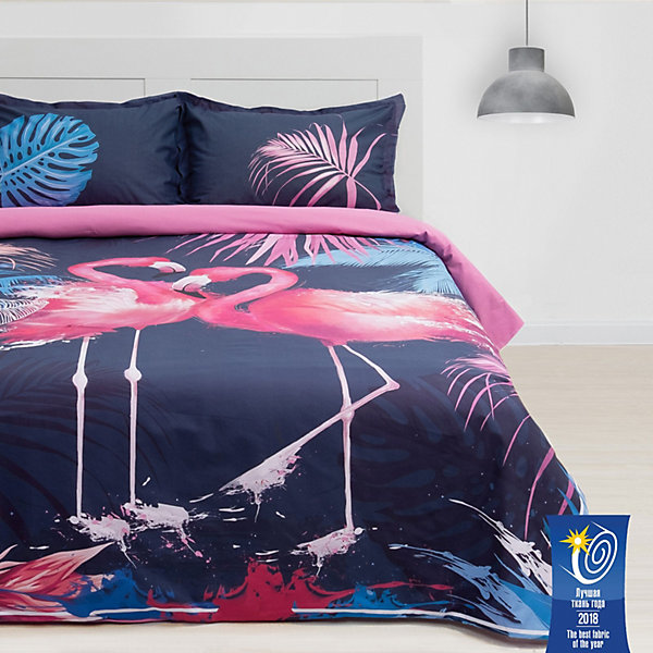 Комплект постельного белья Этель "Тропическая ночь", евро, Розовый, Комплект постельного белья Этель "Тропическая ночь", евро