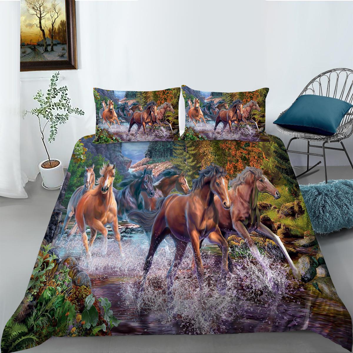 Комплект постельного белья для дома с пуховым одеялом и наволочкой для спальни с тематическим принтом лошади, полноразмерное украшение для дома в Австралии, ЕС и США DE 200x220cm