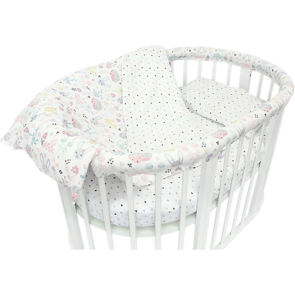Постельное белье Baby Nice для овальной кроватки изготовлено изкачественной бязи импортного производства, которя обеспечивает комфорт и удобство для сна. Натуральная ткань обладает высокими гигиеническими свойствами и повышенной износоустойчивостью. Бельё не деформируется, цвет не выстирывается.