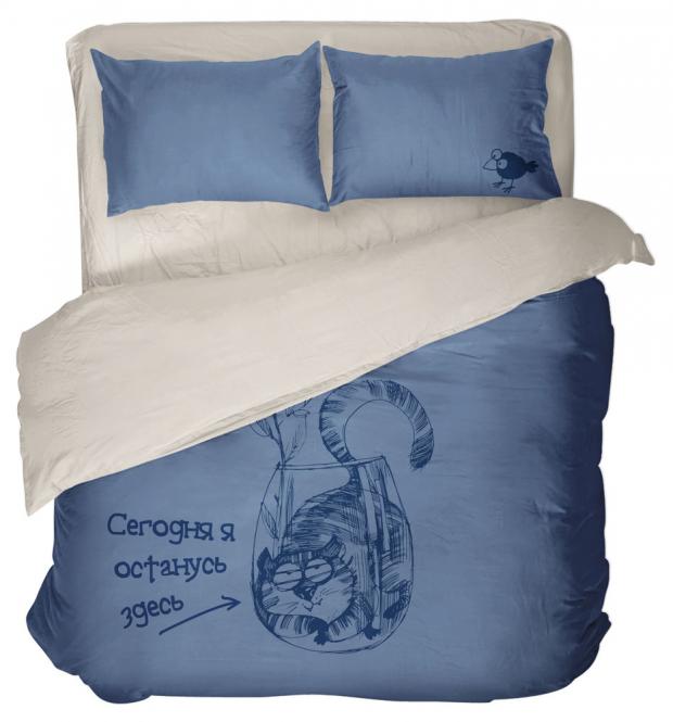 Комплект постельного белья евро «Магия сна» Останусь здесь поплин с оригинальным дизайном. Сделайте вашу спальню ярче.