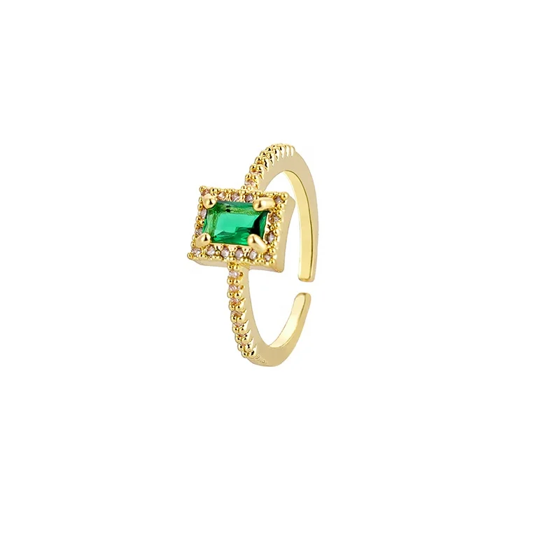 Wholesale Custom 18K Gold Plated Crystal Personality Wedding Gift Jewelry Copper Green Zircon Rings For Women