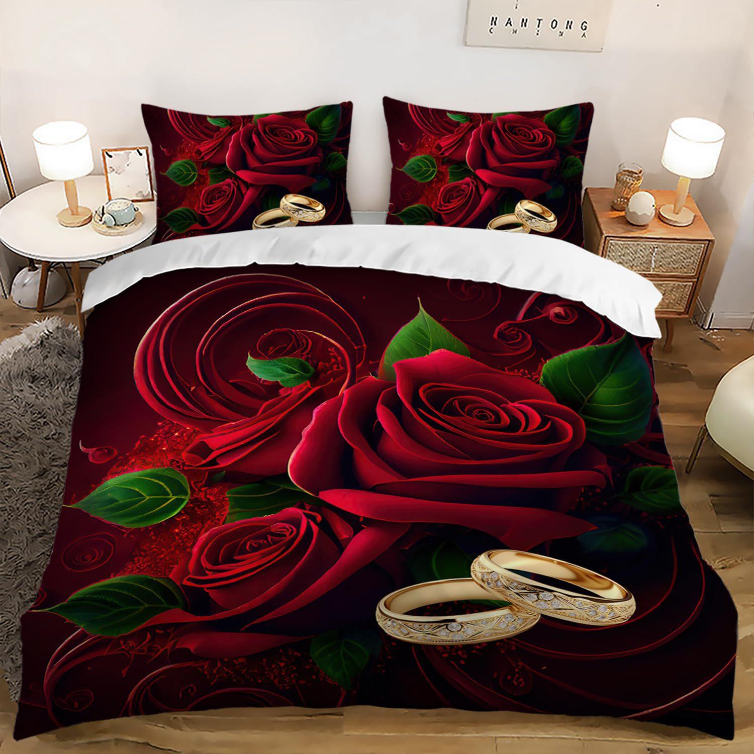 Комплект постельного белья из трех предметов ко Дню святого Валентина с принтом «Любовь и розы» EU single 135*200