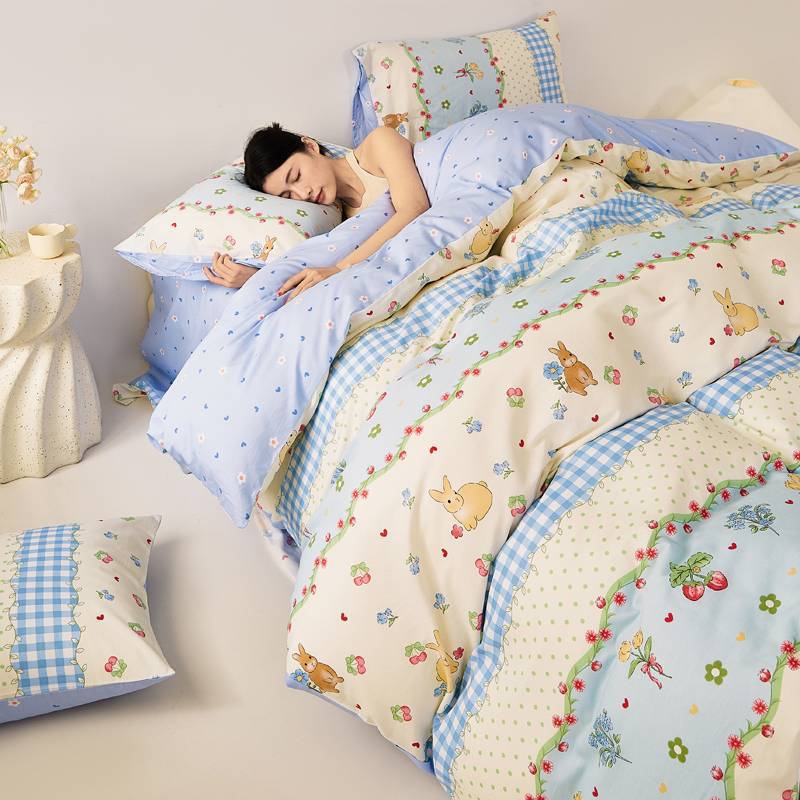 Комплект постельного белья из 100% хлопка, четырехпредметный, с принтом, стиранный, приятный к коже, простыни, пододеяльник, наволочки 1.2m bed