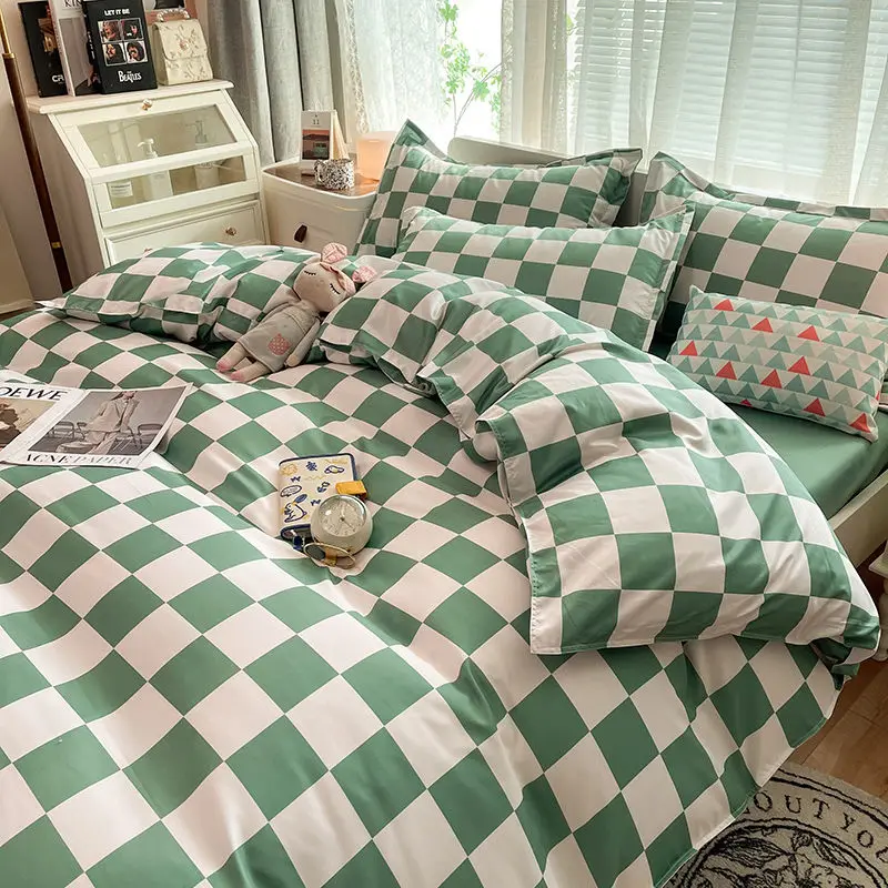 Комплект постельного белья королевского размера с пододеяльником, простыня, наволочка для детей, девочек, мальчиков, шахматная доска, Pinted, односпальное, двухместное постельное белье
