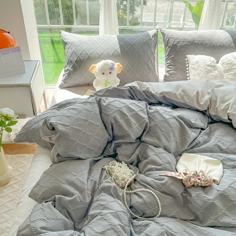 Комплект постельного белья: пододеяльник, простыня, наволочка, однотонный Комплект постельного белья, мягкое одеяло, Комплект постельного белья в скандинавском стиле Ins